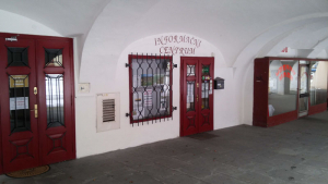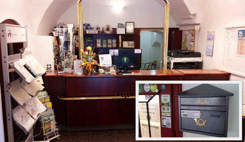 co prodáváme: propagační předměty města, turistické známky, magnetky, keramika, mapy