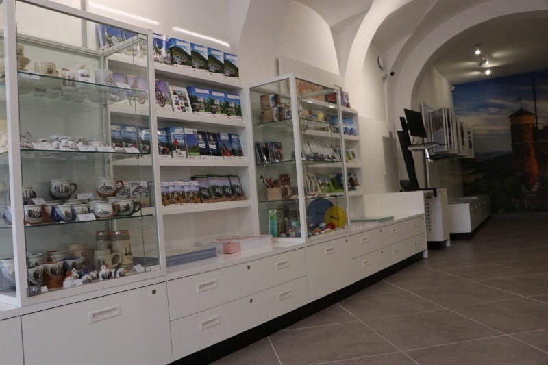 co prodáváme: suvenýry, regionání produkty, mapy, knihy, sklo, keramika, pohledy, poštovní známky atd.
