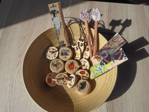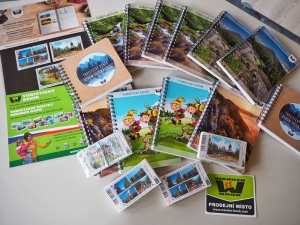 co prodáváme: poštovní, známky, upomínkové předměty, turistické známky a vizitky, publikace o Vrbně pod Pradědem, lihoviny, aj.