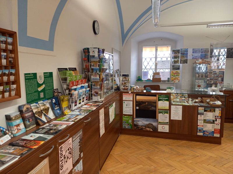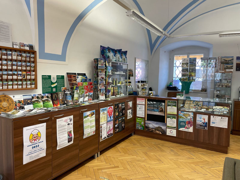 co prodáváme: Magnetky, pohlednice, turistické vizitky a známky, cykloturistické a turistické mapy, knihy a publikace s místní tematikou.