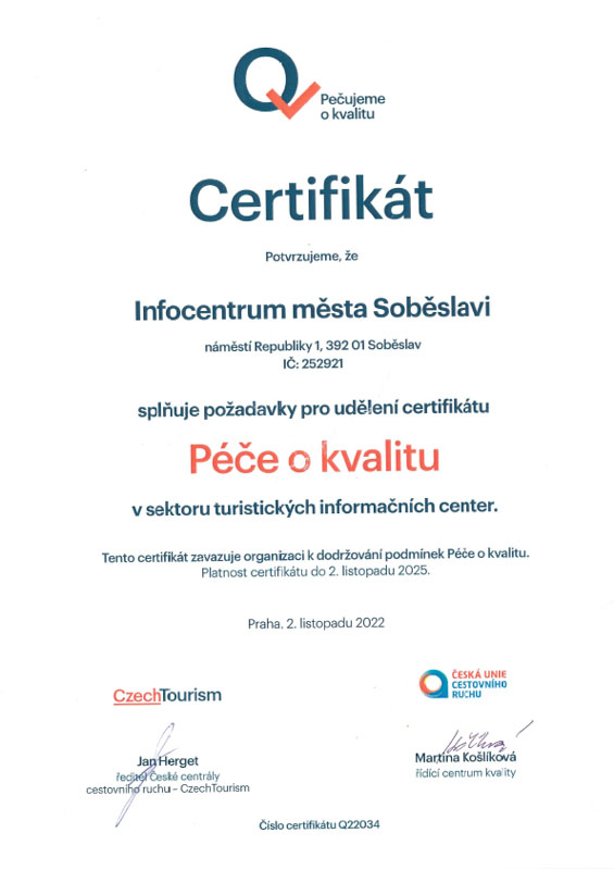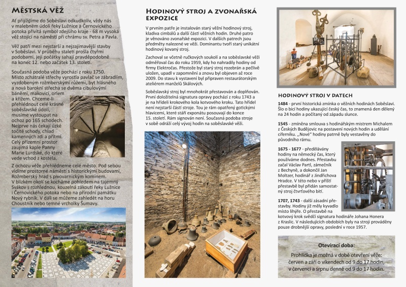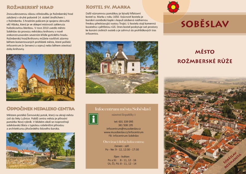 Podáváme informace o pamětihodnostech v Soběslavi a jejím okolí, nabídneme vám možnosti výletů - pěšky, na kole, s kočárkem. Poskytneme přehled kulturních i sportovních akcí pořádaných v našem městě i okolí. Získáte u nás informace o ubytovacích a stravovacích možnostech, o dopravním spojení, apod.
