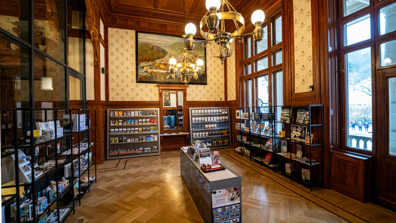 co prodáváme: Suvenýry pro malé i velké, mapy, průvodce, knihy, lázeňské pohárky, poštovní známky…
